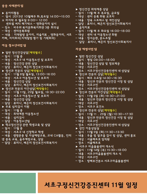 2013년 11월 센터일정입니다.